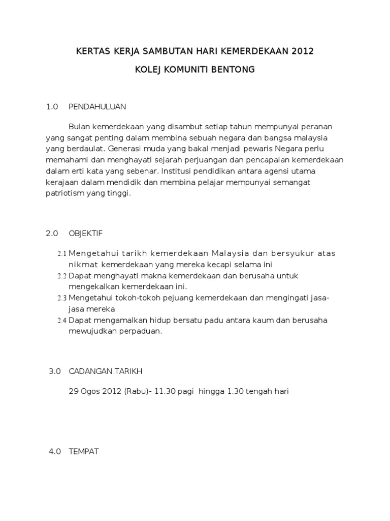 Kertas Kerja Sambutan Hari Kemerdekaan Peringkat Sekolah Pdf